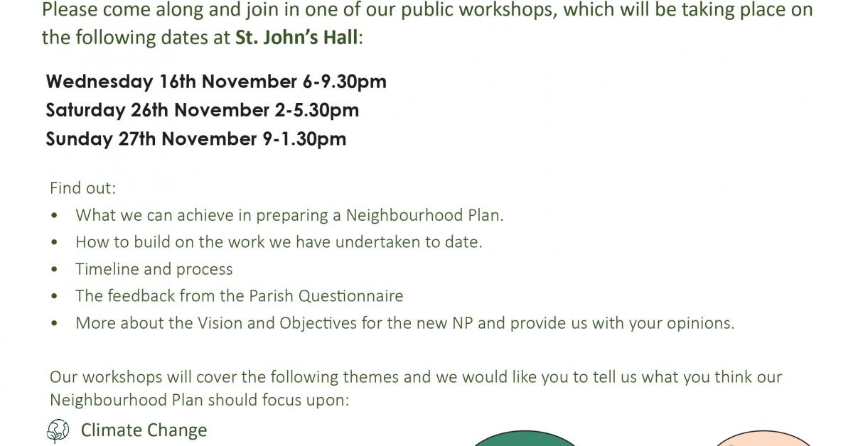 In these interactive sessions, we’ll explain the approach to and proposed topics for inclusion in the new Neighbourhood Plan, giving you the chance to help shape it.